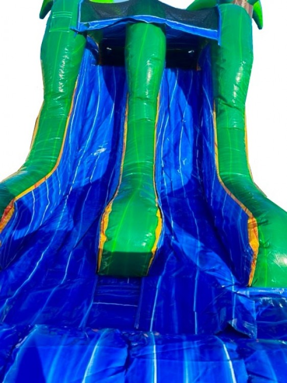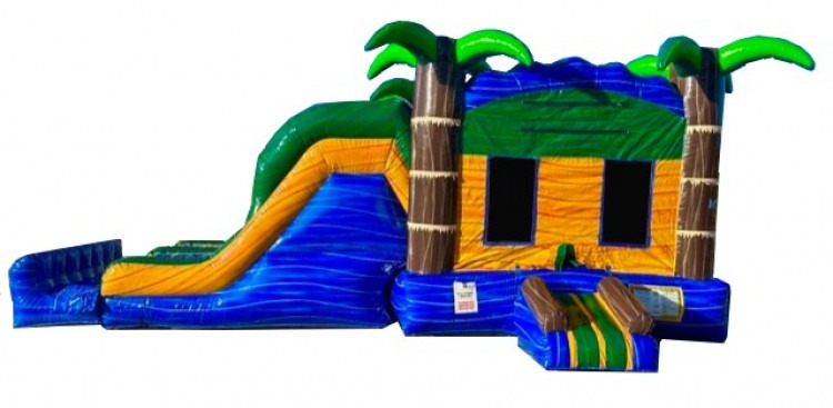 Our large Bahama Breeze Combo is built for people who want to add a WOW factor to their events. With a large double lane slide, huge jumping area, & basketball hoop, this moonwalk combo has all the elements you need to have some serious fun.